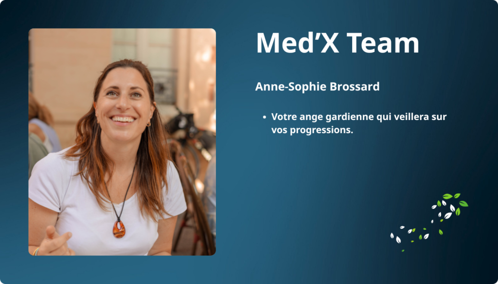 C’est cette triple frustration qui m’a poussée à créer MedX : un système où le médecin a le temps — 1h, 1h30 s’il le faut — où chaque expert travaille en coordination, et où le protocole est entièrement adapté à votre profil. Pas de conseils génériques. Un plan clair, un suivi réel, et des résultats mesurés.